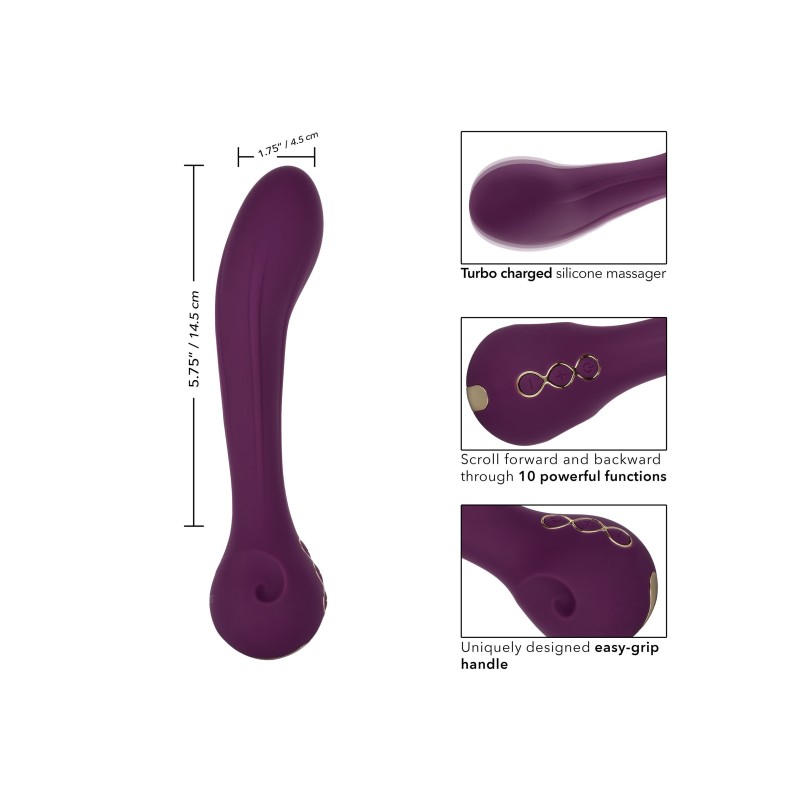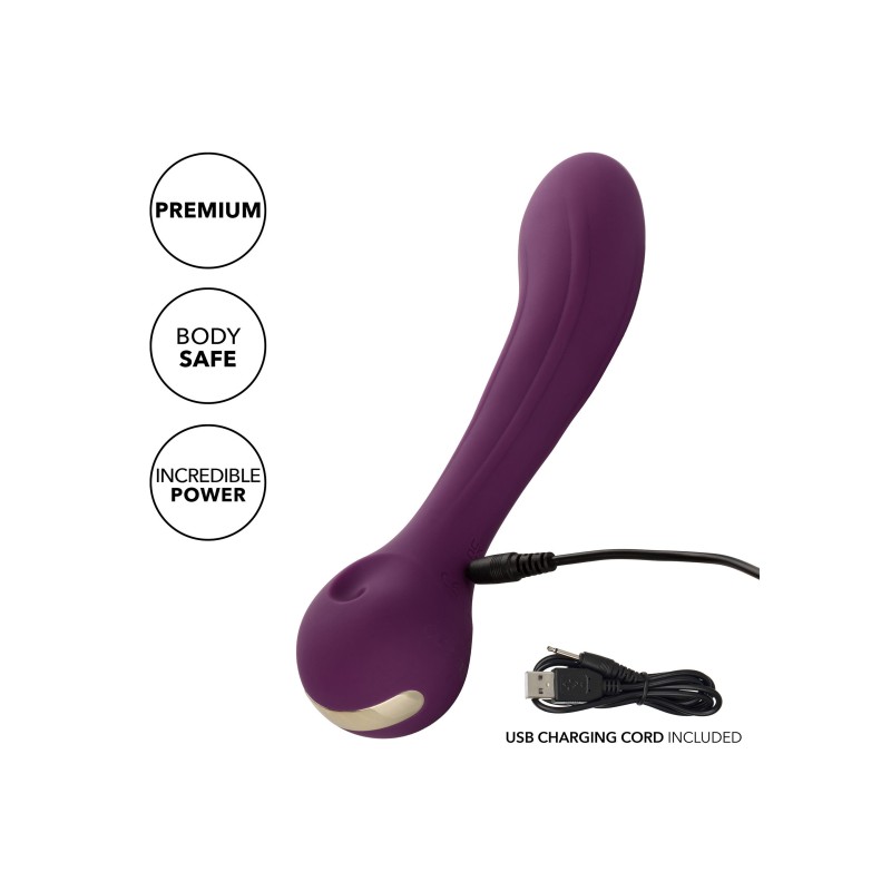 Concedetevi un piacere personalizzato mentre il fusto curvo freme al ritmo di 10 vivaci funzioni di vibrazione. Scorrete avanti e indietro tra le varie opzioni orgasmiche con i facili comandi a due pulsanti. Il massaggiatore è realizzato in un silicone igienicamente superiore e rifinito con un'elegante decorazione di design. Questo materiale sicuro per il corpo non è profumato e non contiene ftalati, per rendere felici e sani i vostri punti più sensibili.