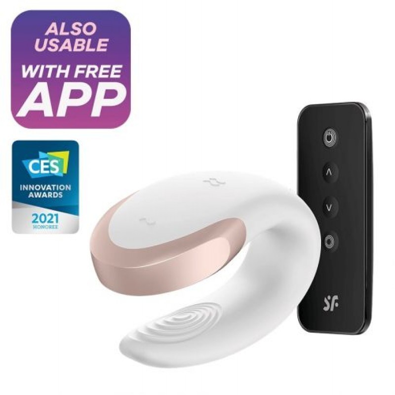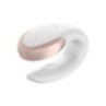 Potente e di design, Double Love White è il nuovo vibratore per coppie della linea Satisfyer facile da controllare attraverso telecomando wireless incluso o con la nuova app Satisfyer Connect, compatibile con qualsiasi smartphone, tablet Android o Apple e Apple Watch. È realizzato con materiali pregiati e dermocompatibili, è impermeabile, flessibile ed impreziosito da dettagli in vero metallo. La texture a coste garantisce una maggiore stabilità durante l’uso e grazie ai diversi programmi vibranti sarà facile godere sempre in modo diverso. Ricaricabile tramite cavo USB magnetico in dotazione.