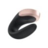 Potente e di design, Double Love Black è il nuovo vibratore per coppie della linea Satisfyer facile da controllare attraverso telecomando wireless incluso o con la nuova app Satisfyer Connect, compatibile con qualsiasi smartphone, tablet Android o Apple e Apple Watch. È realizzato con materiali pregiati e dermocompatibili, è impermeabile, flessibile ed impreziosito da dettagli in vero metallo. La texture a coste garantisce una maggiore stabilità durante l’uso e grazie ai diversi programmi vibranti sarà facile godere sempre in modo diverso. Ricaricabile tramite cavo USB magnetico in dotazione.