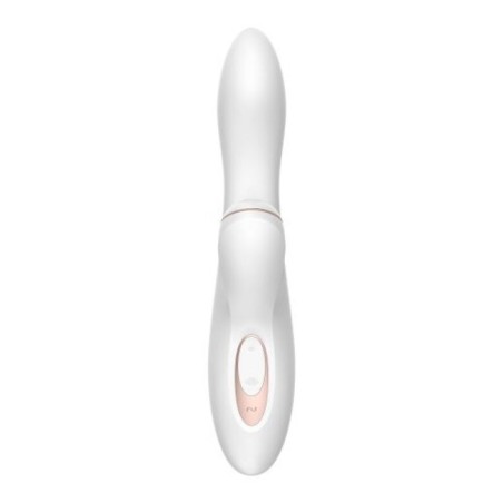 Prova una sensazione completamente nuova con questo vibratore G-spot unico della collezione Satisfyer! Il Rabbit G-Spot Satisfyer Pro combina la stimolazione del punto G con la stimolazione del clitoride ad aria compressa. Il vibratore ha due motori che possono essere controllati separatamente. Sono disponibili 10 impostazioni di vibrazione in totale (3 velocità e 7 modelli) e 11 velocità di pressione dell'aria. Il vibratore è completamente impermeabile ed è realizzato in silicone morbido e liscio per il corpo. Viene fornito con un cavo di ricarica USB magnetico, così puoi ricaricare facilmente il vibratore. Pulire il giocattolo prima e dopo l'uso con acqua e detergente per giocattoli per un uso igienico.