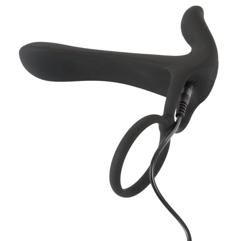 Anello per pene / testicoli con vibratore e vibro stimolatore clitorideo. Il pene e l'anello del testicolo sono ripiegati in modo che il vibratore si annidi sopra il pene. In questo modo, lui può darle piacere con un pene più spesso durante il sesso e sentire lui stesso una deliziosa tenuta. Ed entrambi sentono le vibrazioni. Inoltre, l'anello del pene sostiene grazie all'effetto di stasi del sangue la sua erezione di lunga durata, l'anello del testicolo fornisce una presa ferma e sicura e lo stimolatore clitorideo strutturato vizia con vibrazioni formicolanti direttamente il suo punto caldo. 2 motori forniscono 20 diverse modalità di vibrazione che possono essere comodamente controllate direttamente sul giocattolo con il tocco di un pulsante. Anche dentro/sotto l'acqua, perché il vibratore Couples è impermeabile! Il materiale in silicone di alta qualità con una consistenza morbida al tatto fornisce una sensazione di pelle molto piacevole per entrambi i partner. Ricaricabile - cavo di ricarica USB incluso.