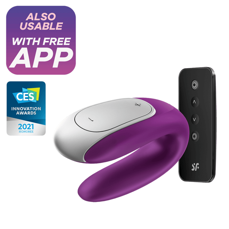 Double Fun Purple è l’ultimo arrivato di casa Satisfyer ed è pronto a stimolare potentemente entrambi i partner durante il rapporto. È realizzato con materiali pregiati e dermocompatibili, è impermeabile, flessibile e caratterizzato da due motori indipendenti e silenziosi. Grazie ai diversi programmi vibranti sarà facile godere sempre in modo diverso. Sarà inoltre possibile controllarlo tramite telecomando wireless incluso o con l’app Satisfyer Connect, compatibile con qualsiasi smartphone, tablet Android o Apple e Apple Watch. Ricaricabile tramite cavo USB magnetico in dotazione.
