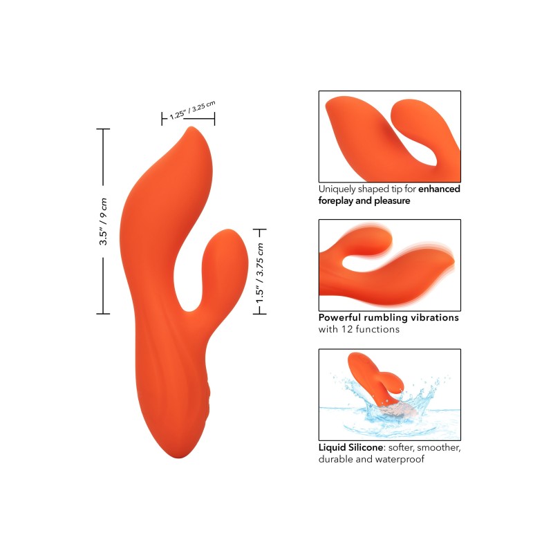 Con lo stupendo Stella Liquid Silicone Dual Teaser rimarrete senza fiato al solo tocco di un pulsante. Questo vibratore doppio intimamente sagomato è tanto eccitante quanto versatile, grazie alla punta dalla forma unica, ai doppi motori e alle 12 funzioni di vibrazione. La punta accentuata dello stimolatore G e le intense pulsazioni del doppio motore consentono una stimolazione del punto G mai provata prima. Questo massaggiatore doppio ad alta potenza è stato creato con un fusto curvo a G e uno stimolatore naturalmente sagomato per abbracciare le vostre curve più intime. Un motore intenso all'interno dell'asta flessibile e un altro all'interno dello stimolatore forniscono vibrazioni rimbombanti per una stimolazione giocosamente potente. Concedetevi un piacere personalizzato mentre l'albero curvo e il teaser si muovono al ritmo di 12 funzioni di vibrazione. Controllate questa varietà di opzioni orgasmiche con il pulsante di controllo facile da toccare. Il massaggiatore flessibile è realizzato in silicone liquido igienicamente superiore per una sensazione più morbida, liscia, durevole e flessibile. Che si tratti di un'immersione con l'amante o di una sessione di vapore in solitaria, potrete godervi fino a 110 minuti di vibrazioni impermeabili. Ricaricate il piacere e tornate a giocare in sole 2 ore con il cavo USB in dotazione. Per portare il piacere in viaggio, la funzione di sicurezza del blocco da viaggio richiede di tenere premuto il pulsante di accensione/spegnimento per 3 secondi per accendere o spegnere il dispositivo.