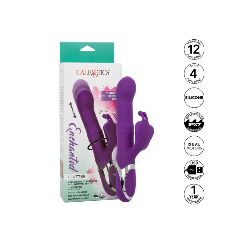 Immergiti nel piacere con l'Enchanted Flutter, un armonioso connubio di potenza e delicatezza per un piacere indimenticabile. Realizzato con silicone sicuro per il corpo e impermeabile al 100% con valutazione IPX7, invita all'esplorazione in qualsiasi ambiente. Questo sofisticato dispositivo presenta una combinazione unica di un potente albero con perle rotanti e a spinta, e un teaser fluttuante. Con 4 funzioni di azione di spinta e rotazione delle perle nell'albero e 12 funzioni di vibrazione nello stimolatore, offre un'esperienza profondamente soddisfacente. Il chip di memoria garantisce un piacere senza interruzioni, mentre i controlli semplici a pulsante e la ricarica USB garantiscono la comodità. Goditi 45 minuti di piacere ad alta velocità o 55 minuti a velocità più bassa dopo appena 1,5 ore di ricarica.