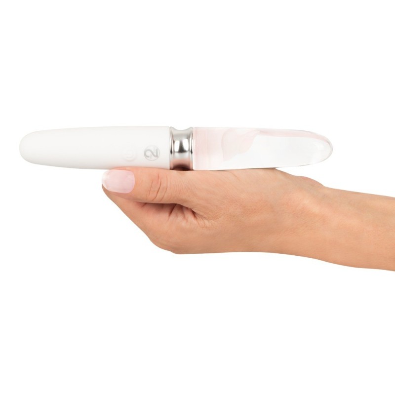Una liaison peccaminosamente bella di vetro e silicone! Elegante vibratore dritto a LED di Liaison che combina tutti i vantaggi di un vibratore in silicone e vetro. Il design dritto e maneggevole può essere utilizzato da entrambi i lati: un lato vibratore in silicone con texture morbida e setosa al tatto, l'altro lato vibratore in vetro borosilicato di qualità solida con sensuale illuminazione a LED nella punta. Un potente motore offre 10 diverse modalità di vibrazione, comodamente controllabili con un pulsante al centro del vibratore Straight LED. Le vibrazioni possono essere percepite intensamente da entrambe le estremità per massaggi e stimolazioni versatili all'interno e sul corpo, per il divertimento in solitaria o per fare l'amore in due. Il materiale di alta qualità, adatto al corpo, composto da vetro e silicone, scivola sulla pelle e nelle profondità intime come se fosse da solo. Grazie a queste superfici completamente lisce, il vibratore Straight LED è semplice e facile da pulire. Il vibratore in vetro può anche essere facilmente riscaldato o raffreddato per sofisticati giochi di temperatura. Ricaricabile - Cavo di ricarica USB incluso. Lunghezza totale 17,7 cm. Lunghezza di inserimento del vibratore in silicone 8,5 cm, Ø massimo 2,5 cm. Vibratore in vetro Lunghezza di inserimento 8 cm, Ø max. 2,5 cm. Peso 112 g. Silicone, PU, ABS, vetro.