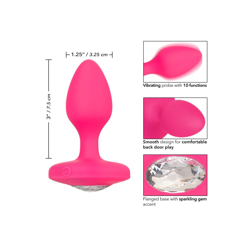 Cheeky Gem Medium Rechargeable Vibrating Probe è una sonda in silicone abbagliante e flessibile, creata sia per i principianti che per gli esperti di toy. Il design ergonomico e il potente motore vibrante consentono a questa sonda di fornire vibrazioni intense. L'accento gemmato aggiunge un tocco di brillantezza a qualsiasi avventura backdoor. Per assicurarvi tutto ciò che l'esaltante mondo del gioco anale ha da offrire, abbiamo creato una sonda delicatamente affusolata per il massimo del comfort e della stimolazione. La forma flessibile e la base flangiata consentono un facile inserimento e rimozione, mentre l'intenso motore vi farà rabbrividire di piacere. Concedetevi un piacere personalizzato mentre l'elegante sonda pulsa con 10 vivaci funzioni di vibrazione, pulsazione ed escalation. Controllate questa varietà di opzioni orgasmiche con il pulsante in silicone facile da toccare. Portate il vostro piacere in viaggio ed evitate accensioni accidentali con la funzione di sicurezza del blocco da viaggio. Che si tratti di un'immersione con l'amante o di una vaporosa sessione in solitaria, il piacere è assicurato da un massimo di 90 minuti di vibrazioni impermeabili. Ricaricate il piacere e tornate a giocare in sole 2 ore con il cavo USB in dotazione.