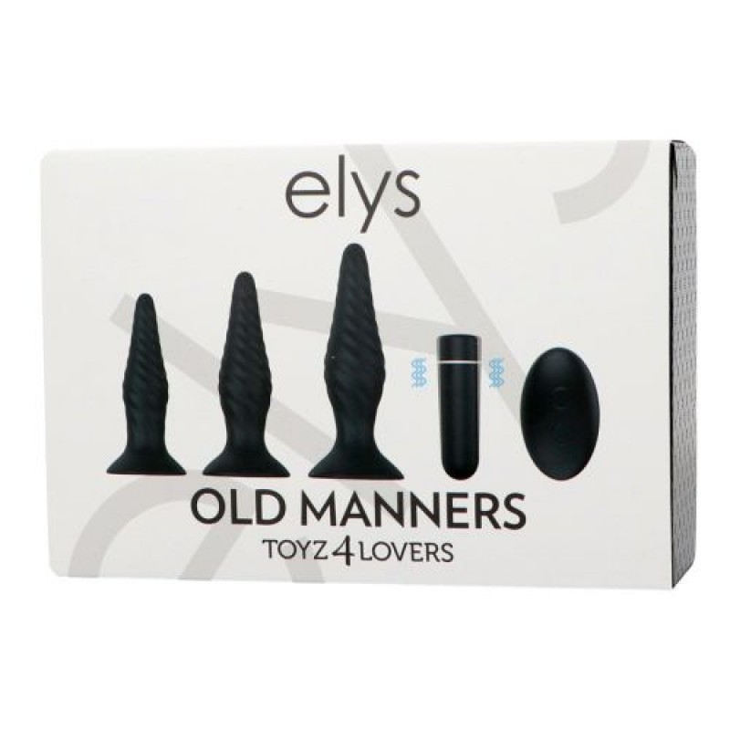 L’Old Manners è un set composto da 3 plug conici e con un diametro crescente da utilizzare come training anale. Hanno morbidi rilievi sulla superficie ed un mini bullet con diverse modalità di vibrazione. Al set si aggiunge un piccolo telecomando wireless per il controllo anche a distanza. Realizzato in morbido silicone medicale e Abs, senza lattice e ftalati, è waterproof, silenzioso e si ricarica tramite cavo USB magnetico in dotazione. Misure plug: 11 x 2.5 cm; 12,4 x 3.0 cm; 14,2 x 3.5 cm.