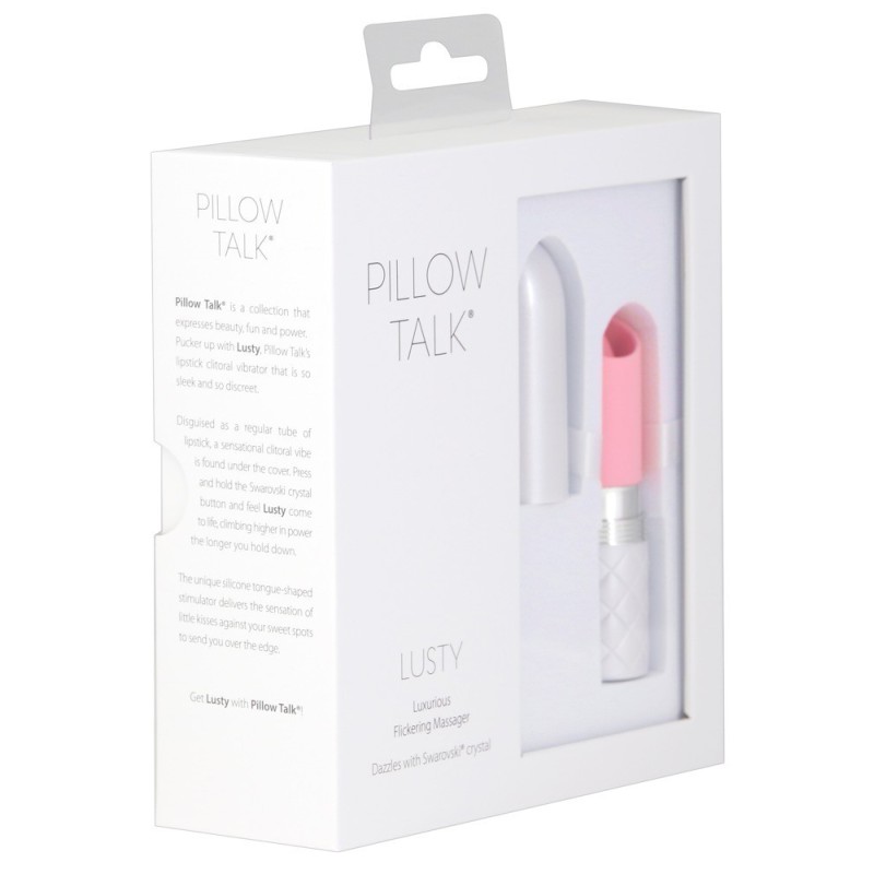Design discreto per il rossetto da borsetta! Mini vibratore Lusty di Pillow Talk, che sembra un vero e proprio rossetto con il suo design nobile e il gioiello Swarovski - con o senza cappuccio protettivo. Una lingua tremolante vibra nella sua punta aperta, perfetta per la stimolazione mirata dei punti di piacere, ad esempio su clitoride, capezzoli, testicoli, perineo, ecc. Le vibrazioni lambenti possono essere comodamente controllate in modo graduale con la semplice pressione di un pulsante. Ricaricabile - Cavo di ricarica USB incluso Lunghezza totale 9,4 cm, larghezza 2,4 cm. Peso 38,5 g. ABS, silicone.