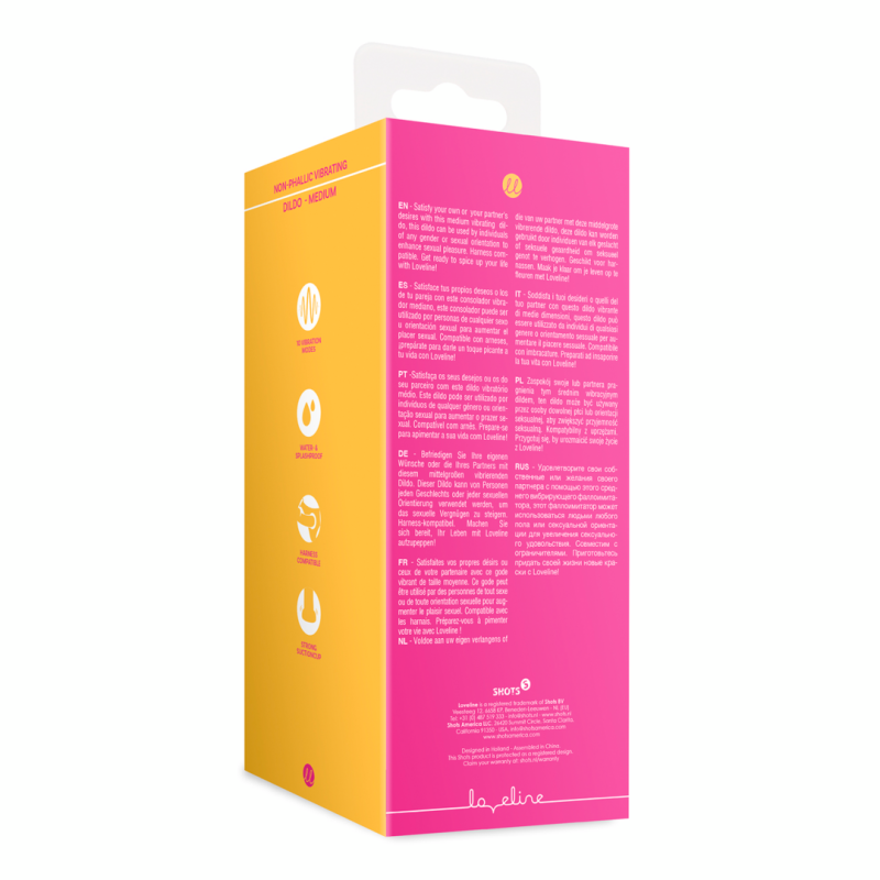 Soddisfa i tuoi desideri o quelli del tuo partner con questo dildo vibrante medio, questo dildo può essere utilizzato da individui di qualsiasi genere o orientamento sessuale per aumentare il piacere sessuale. Compatibile con imbracatura. Preparati a ravvivare la tua vita con Loveline!