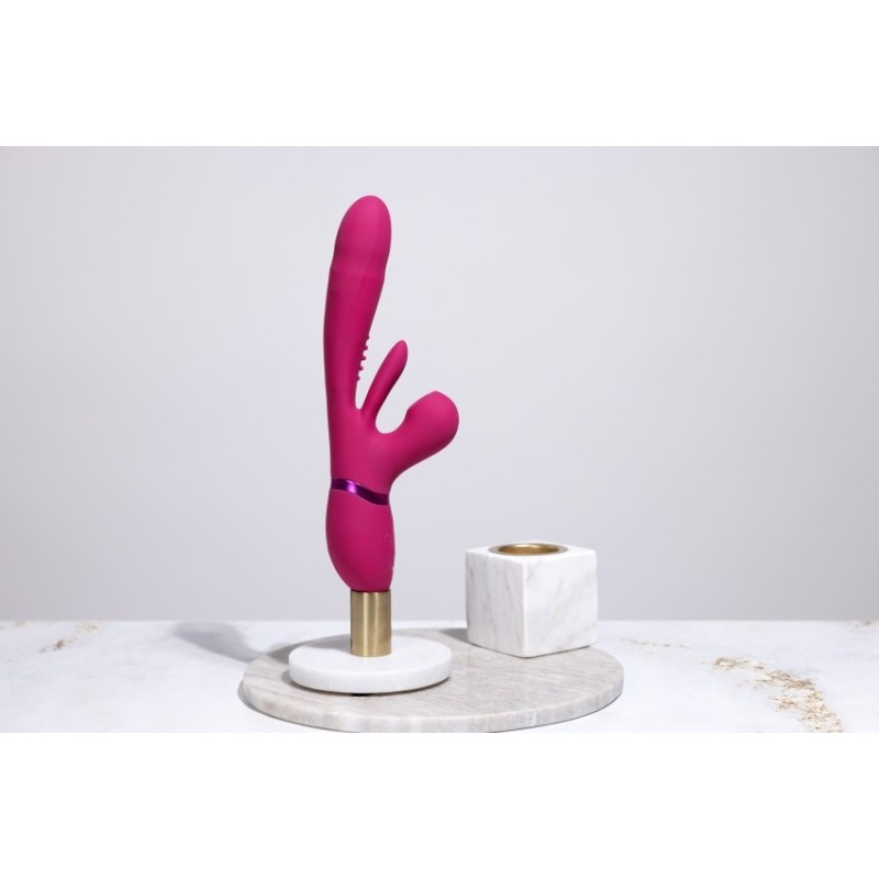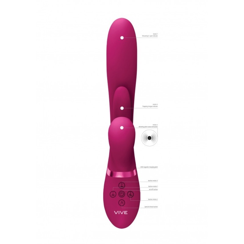 VIVE052 è in una classe a sé stante. Con tre motori F1 di Nuova Generazione con 10 funzioni e le sue tecnologie avanzate (i tre motori possono essere controllati in modo indipendente): Un innovativo motore di spinta NG F1 a 10 funzioni per il tuo punto G, uno dei primi nel suo genere NG F1 Motore ad albero battente a 10 funzioni e un motore NG F1 a 10 funzioni Pulse-Wave per la stimolazione del clitoride, è sicuro di portarti alle massime vette del piacere in tutte le tue zone erogene. Puoi configurare il tuo giocattolo con un massimo di 1.000 impostazioni distintive. Realizzato in silicone di grado medicale liscio come la seta (ipoallergenico), è totalmente impermeabile (IPX7) ed estremamente silenzioso, essendo sotto i 60 dB. Ciò significa che puoi usarlo ovunque il tuo cuore desideri! Contiene una batteria agli ioni di litio ricaricabile USB magnetica. Quando viene ricaricato con il cavo USB incluso, fornirà 60 minuti di gioco passionale. Basta collegare, caricare e giocare! Quando ti stai avvicinando all'orgasmo, un solo tocco del pulsante della funzione speciale climax porterà immediatamente tutti i motori a piena potenza/velocità e, cosa più importante, ti porterà ad un orgasmo sconvolgente. Tutti i vibratori VIVE hanno una garanzia completa di 1 anno per proteggere il tuo investimento.